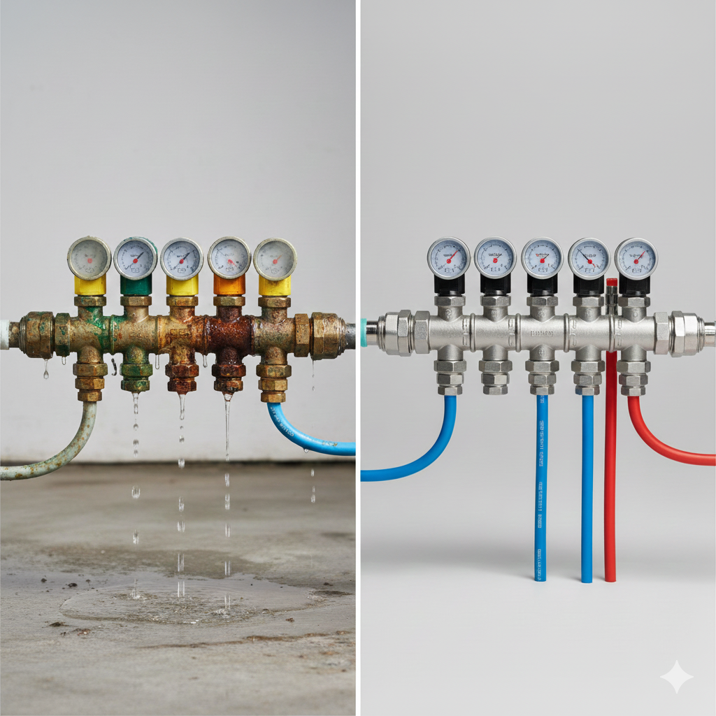 Kollektör, yerden ısıtma sisteminin kalbidir. Kalitesiz veya kapasiteye uygun olmayan kollektörler, zamanla debi dengesizliklerine ve sızıntı risklerine neden olabilir.